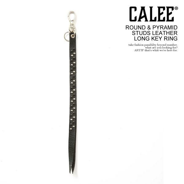 CALEE キャリー ROUND & PYRAMID STUDS LEATHER LONG KEY RING