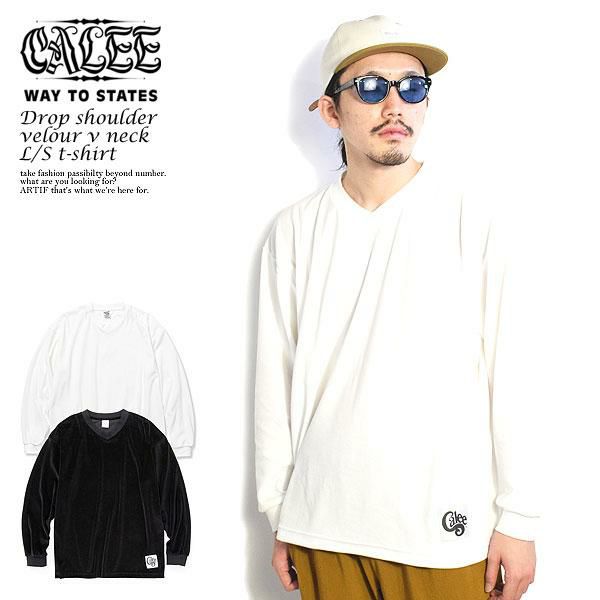 40%OFF SALE セール CALEE キャリー DROP SHOULDER VELOUR V NECK L/S T-SHIRT