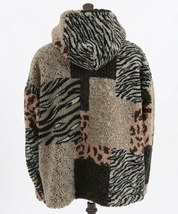 GLIMCLAP グリムクラップ Ripstop nylon × shaggy leopard zip up jacket