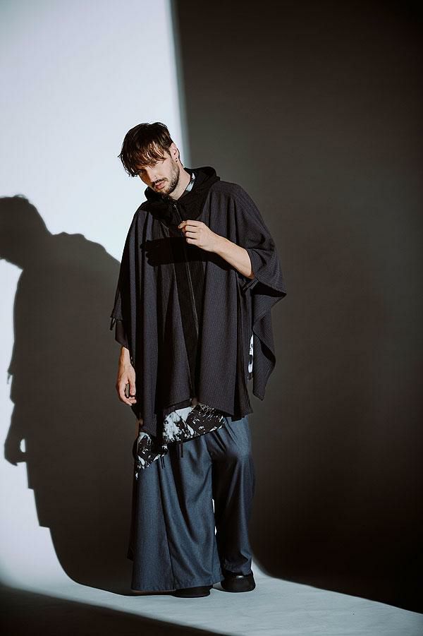 30%OFF SALE セール NO ID. BLACK ノーアイディー ドローストリングスフーデッドポンチョ