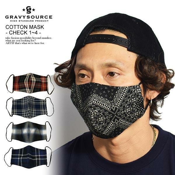 GRAVYSOURCE グレイビーソース COTTON MASK -CHECK 1~4-