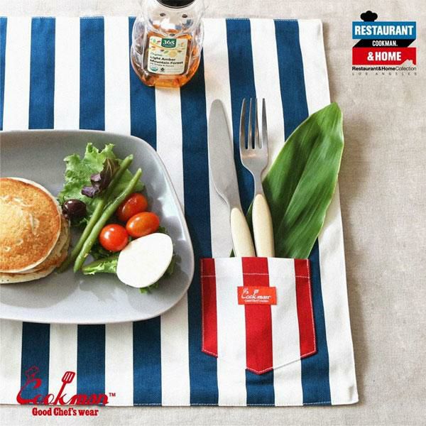 COOKMAN クックマン TABLE POCKET MAT REVERSIBLE -WIDE STRIPE NAVY & RED-
