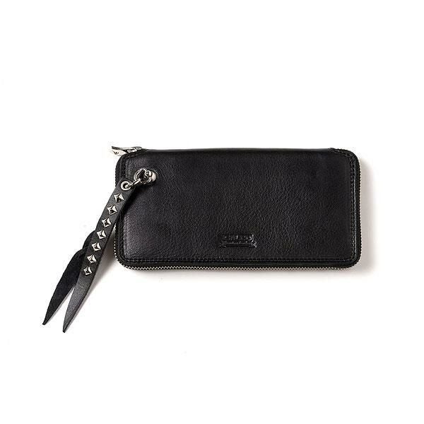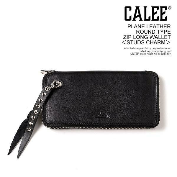 CALEE キャリー PLANE LEATHER ROUND TYPE ZIP LONG WALLET -STUDS CHARM-