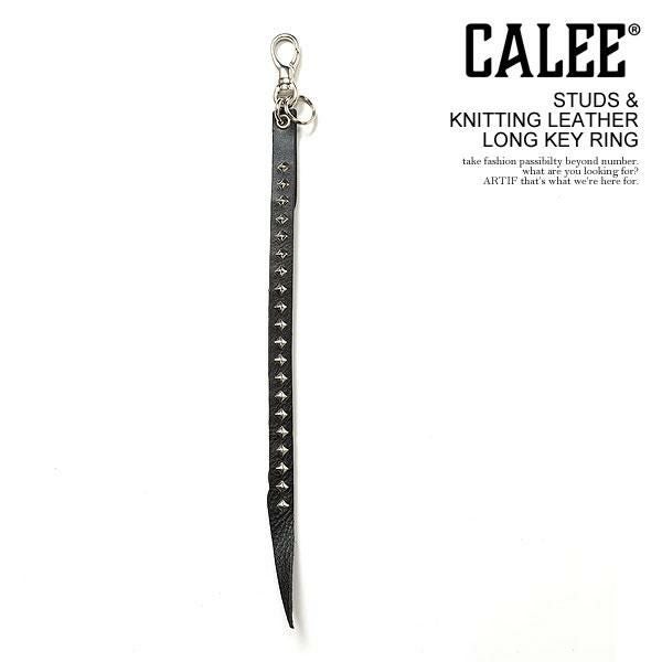 CALEE キャリー STUDS & KNITTING LEATHER LONG KEY RING