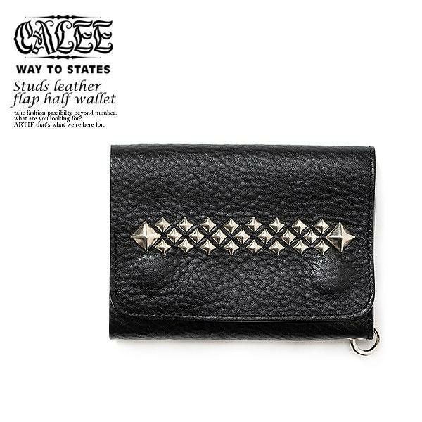 CALEE キャリー STUDS LEATHER FLAP HALF WALLET CL-24AW011LE