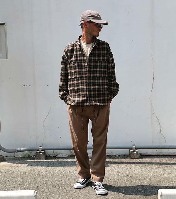 COOKMAN クックマン Chef Pants Semiwide Light Tweed Scottish Tartan Brown -DARK BROWN-