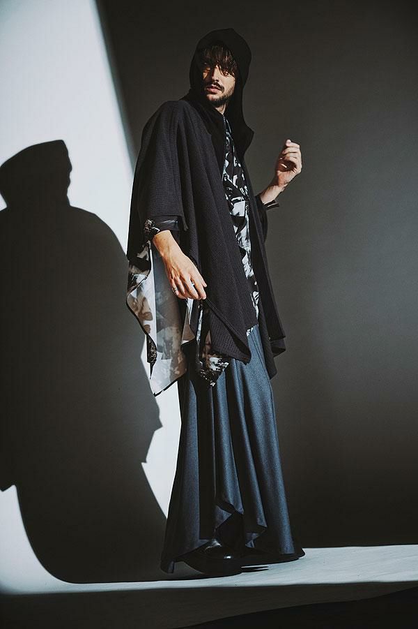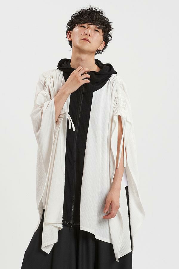30%OFF SALE セール NO ID. BLACK ノーアイディー ドローストリングスフーデッドポンチョ