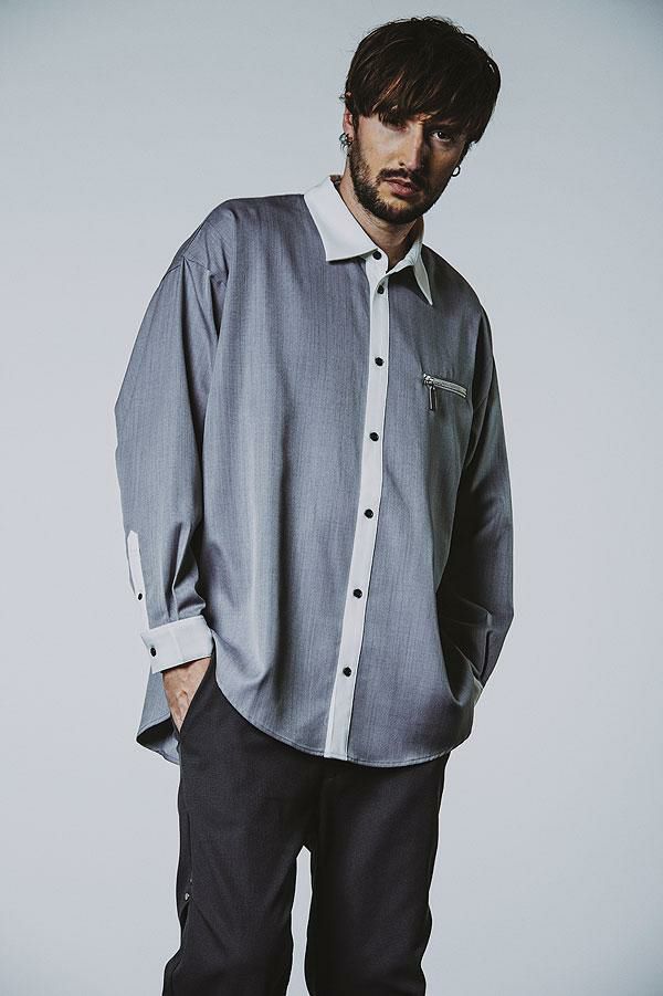 BIG MIKE ビッグマイク RAYON MIX OMBRE SLIT L/S SHIRTS -WHT×GRY-