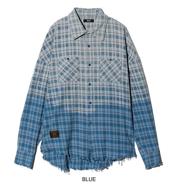 BIG MIKE ビッグマイク RAYON MIX OMBRE SLIT L/S SHIRTS -WHT×BLU-