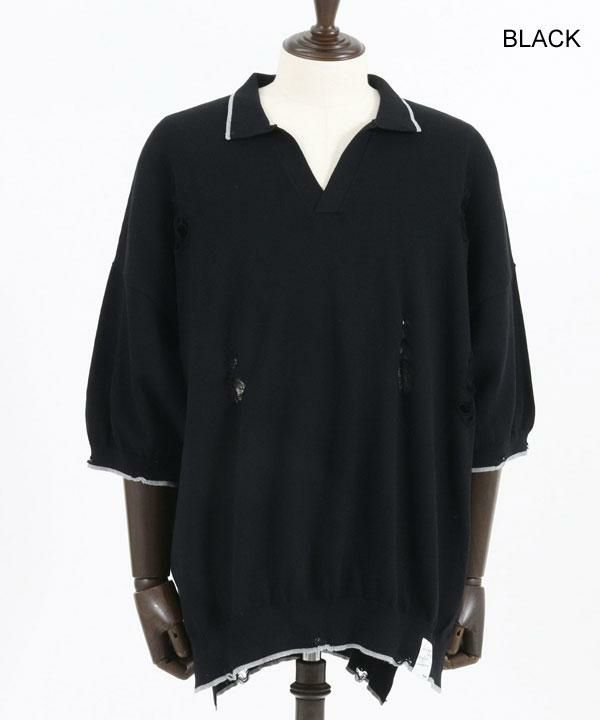 2024 春夏 2nd 先行予約 6月上旬~中旬入荷予定 GLIMCLAP グリムクラップ distressed short-sleeve polo shirt sweater