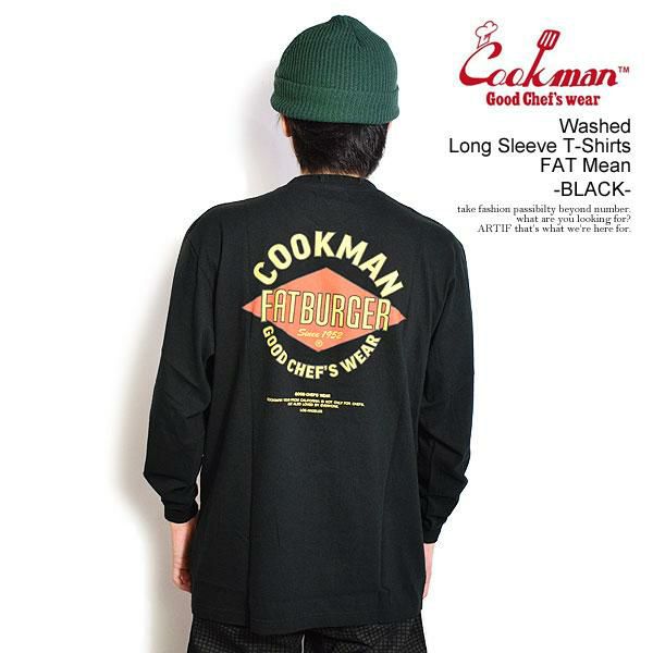 COOKMAN クックマン Washed Long Sleeve T-Shirts FAT Mean -BLACK-