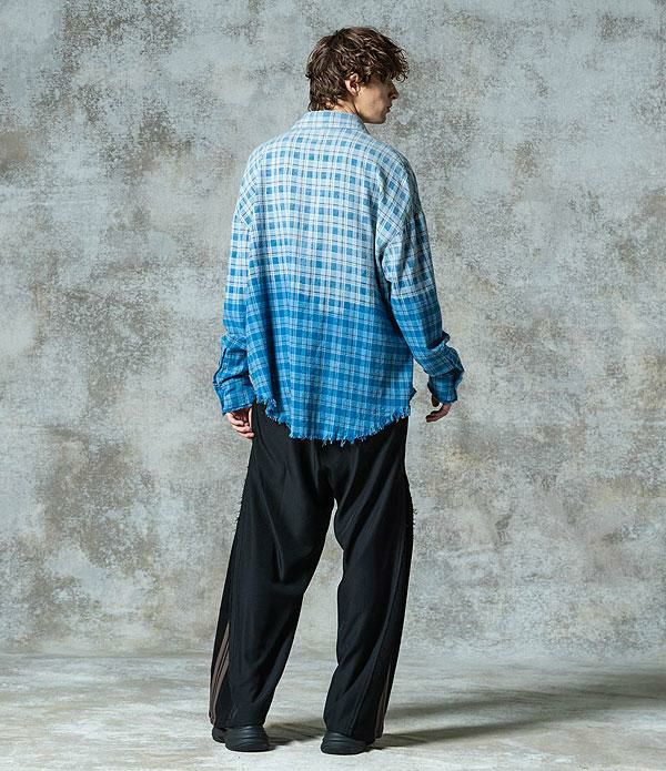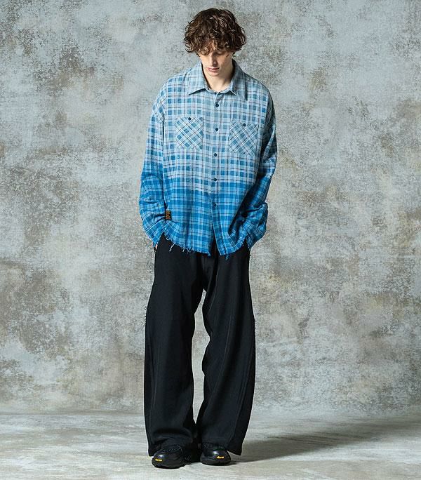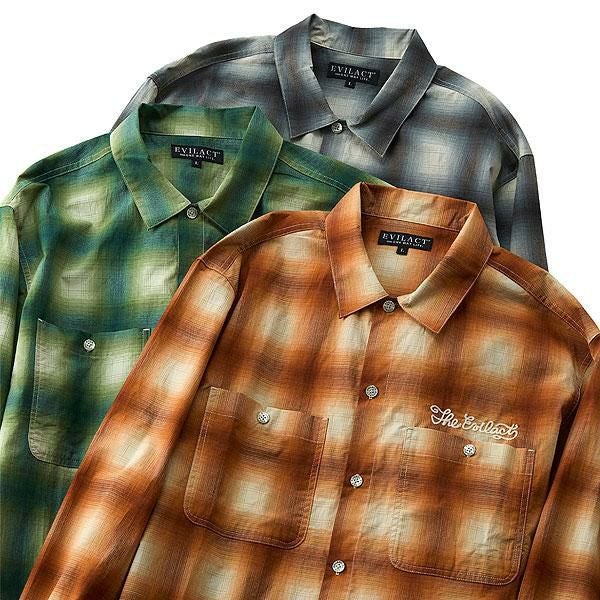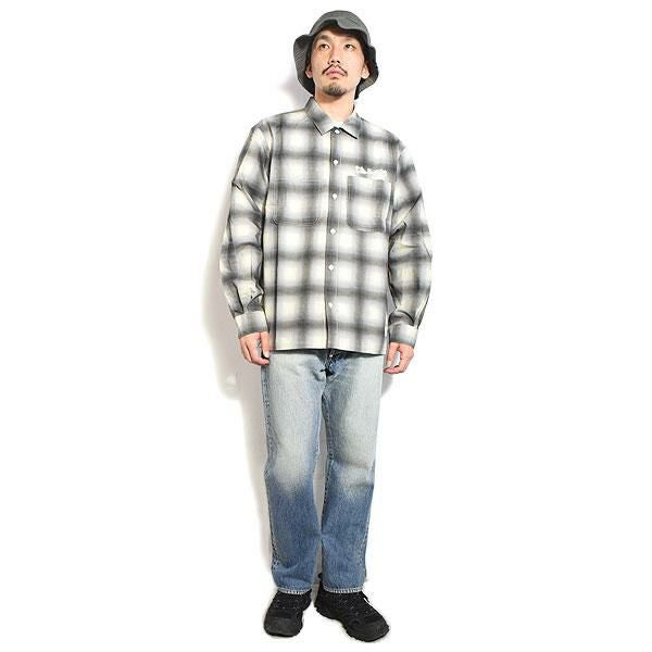 BIG MIKE ビッグマイク RAYON MIX OMBRE CHECK S/S SHIRTS - MNT×WHT