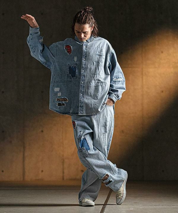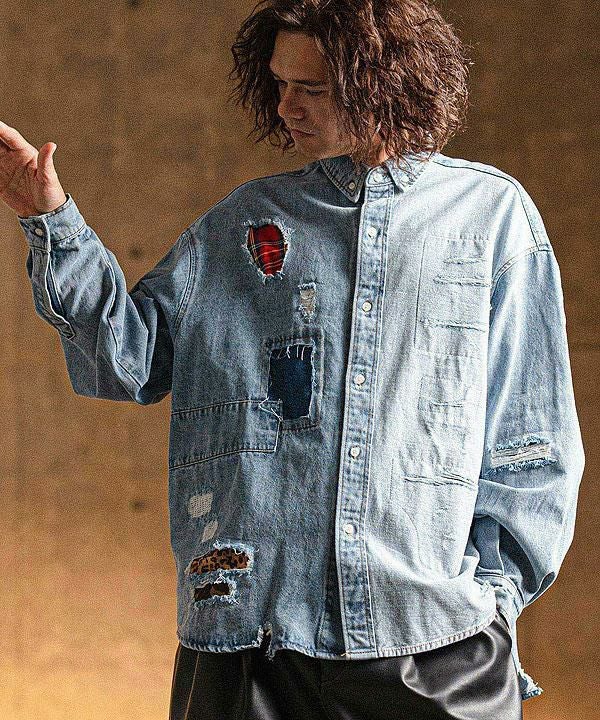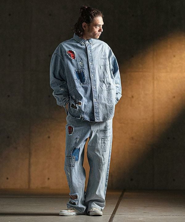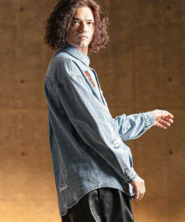 2025 春夏 1st 先行予約 2月上旬~中旬入荷予定 GLIMCLAP グリムクラップ Distressed denim shirt