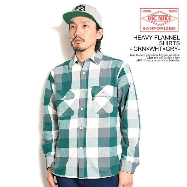 BIG MIKE ビッグマイク HEAVY FLANNEL SHIRTS - GRN×WHT×GRY