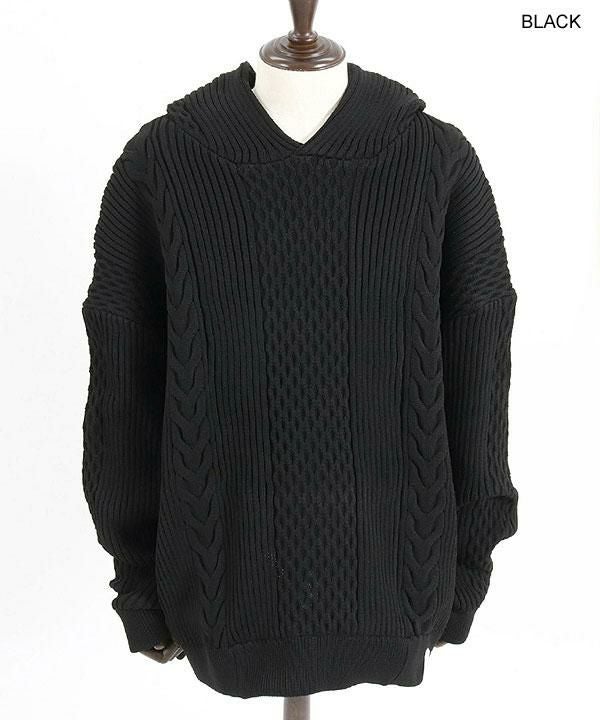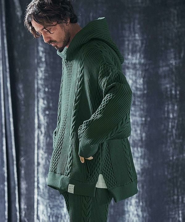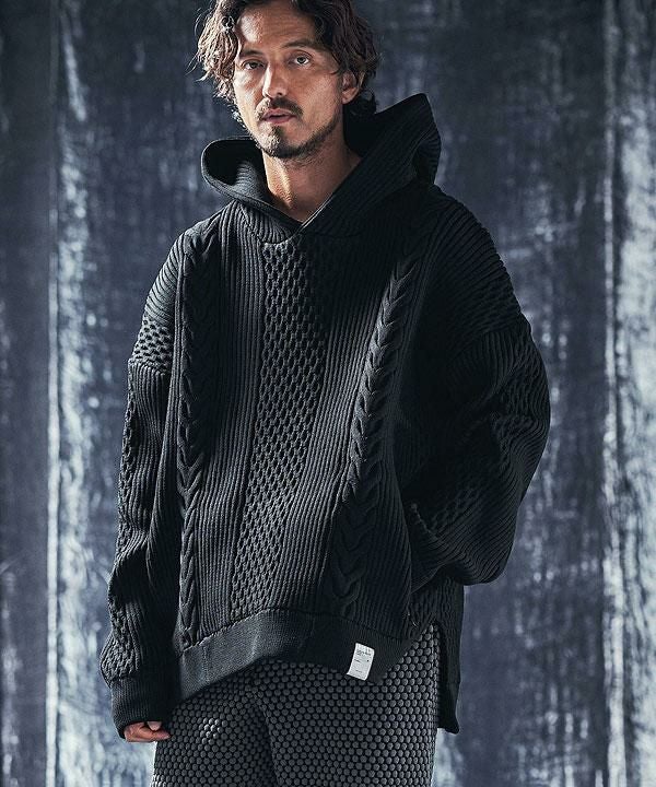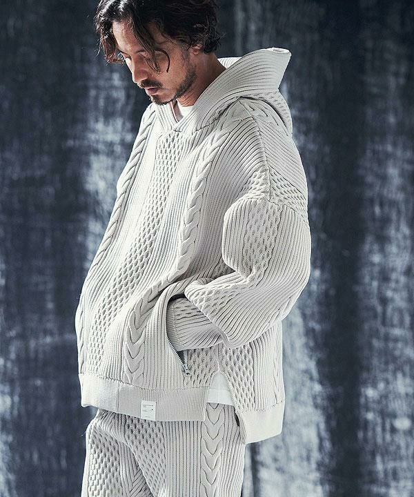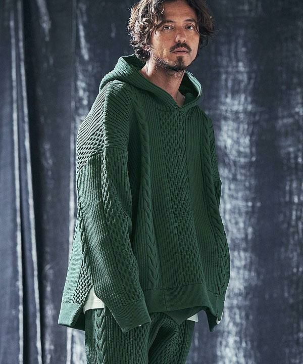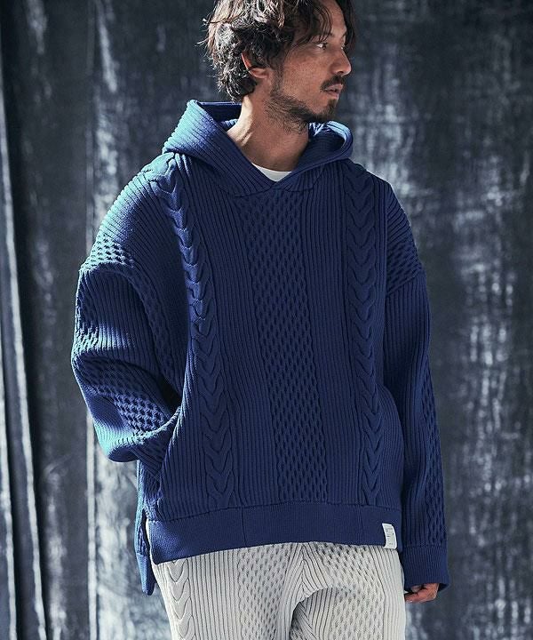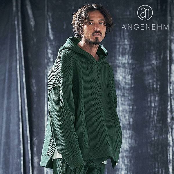 ANGENEHM アンゲネーム Light yarn cable stitch knit hoodie
