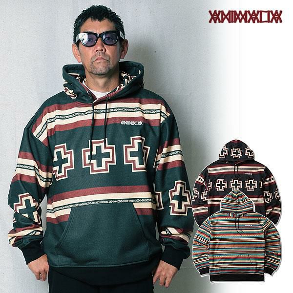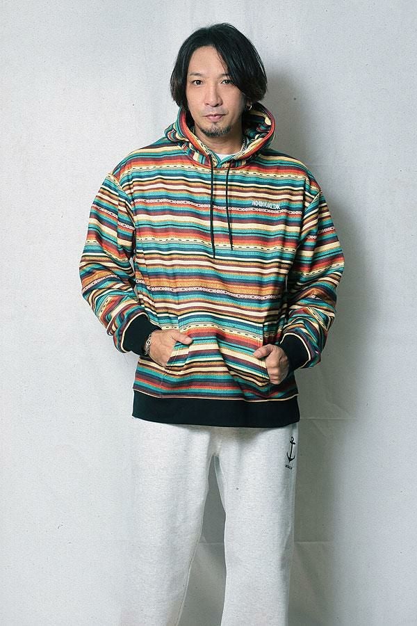 30%OFF SALE セール ANIMALIA アニマリア PATTERNED ALL OVER HOODIE : CHIEF CROSS / SUNRISE BORDER