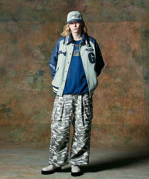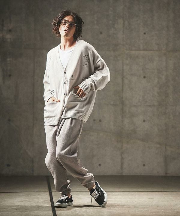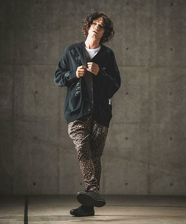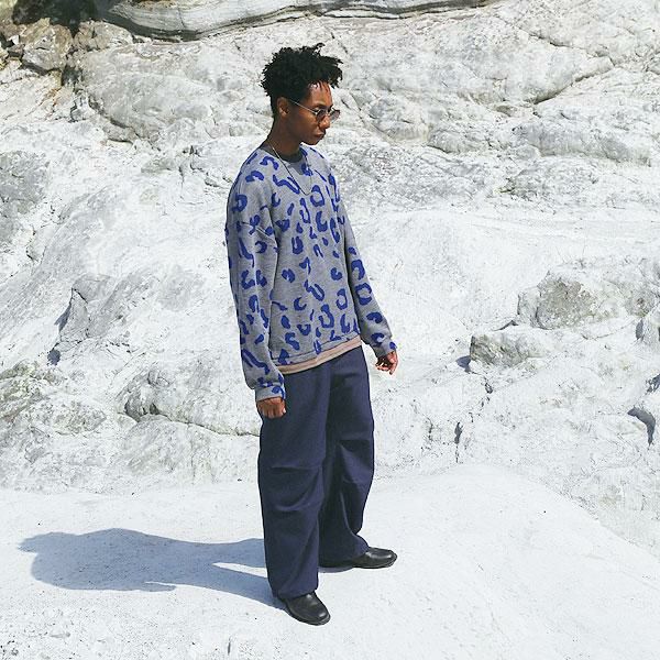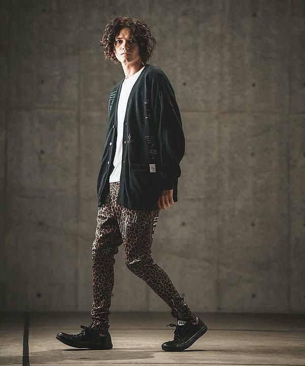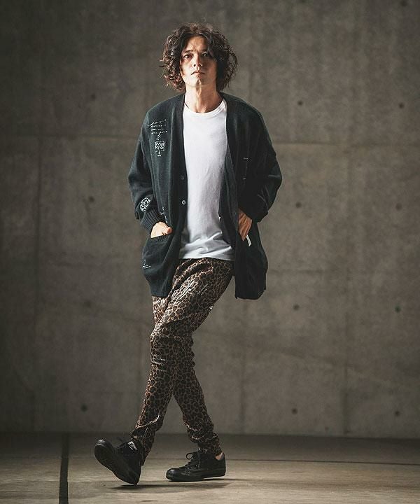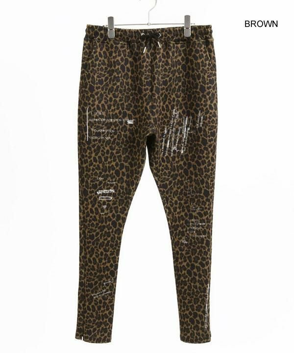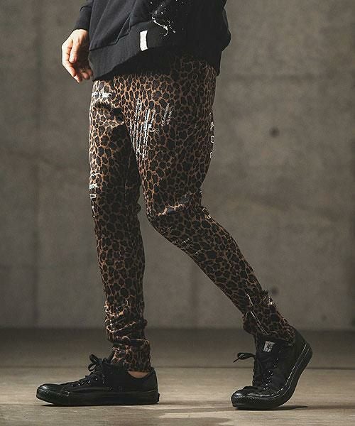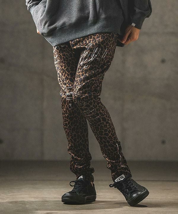 2024 秋冬 2nd 先行予約 10月上旬~中旬入荷予定 GLIMCLAP グリムクラップ Tight fit track pants -leopard × hand writing pattern-