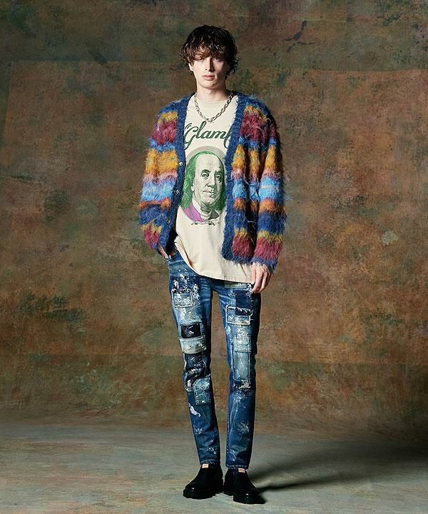 GLIMCLAP グリムクラップ Back shaggy double knit color scheme design tight fit pants