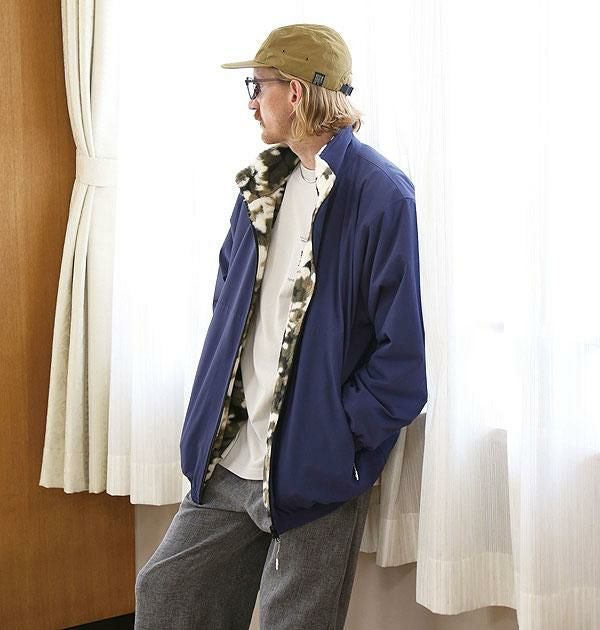 GLIMCLAP グリムクラップ Ripstop nylon × shaggy leopard zip up jacket