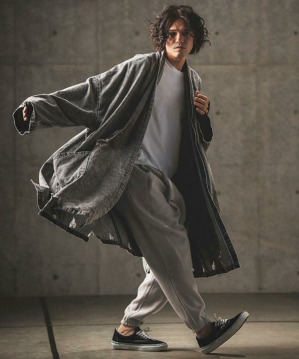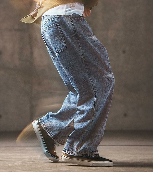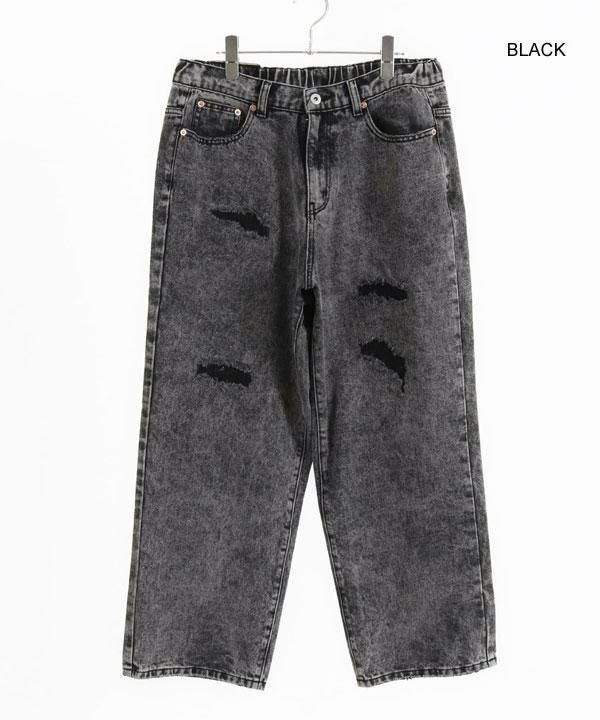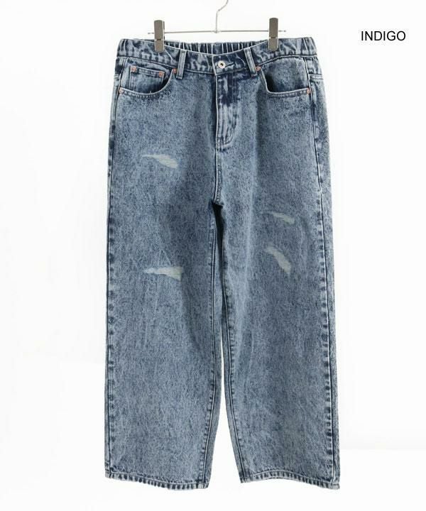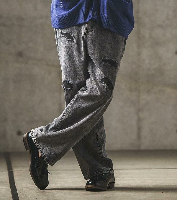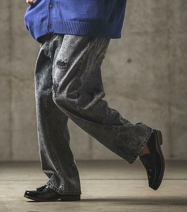 GLIMCLAP グリムクラップ Chemical processing denim wide straight pants