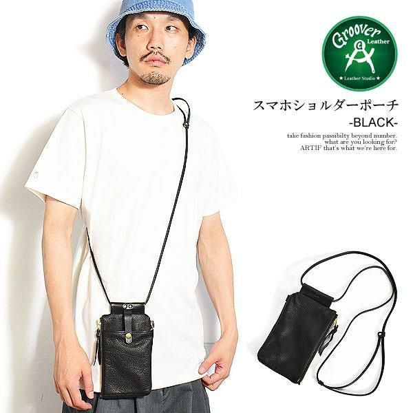 GROOVER LEATHER グルーバーレザー スマホショルダーポーチ -BLACK-