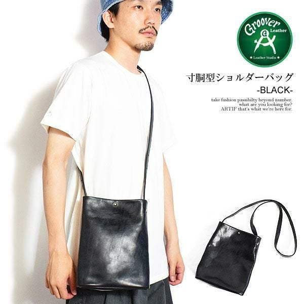 GROOVER LEATHER グルーバーレザー 寸胴型ショルダーバッグ -BLACK-