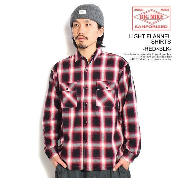 BIG MIKE ビッグマイク LIGHT FLANNEL SHIRTS - RED×BLACK