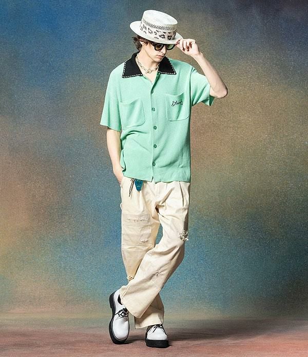 2025 夏 先行予約 5月上旬~中旬入荷予定 glamb グラム Stitch Collar Knit Shirt