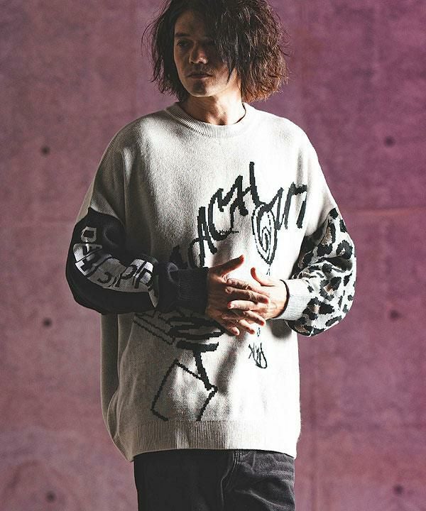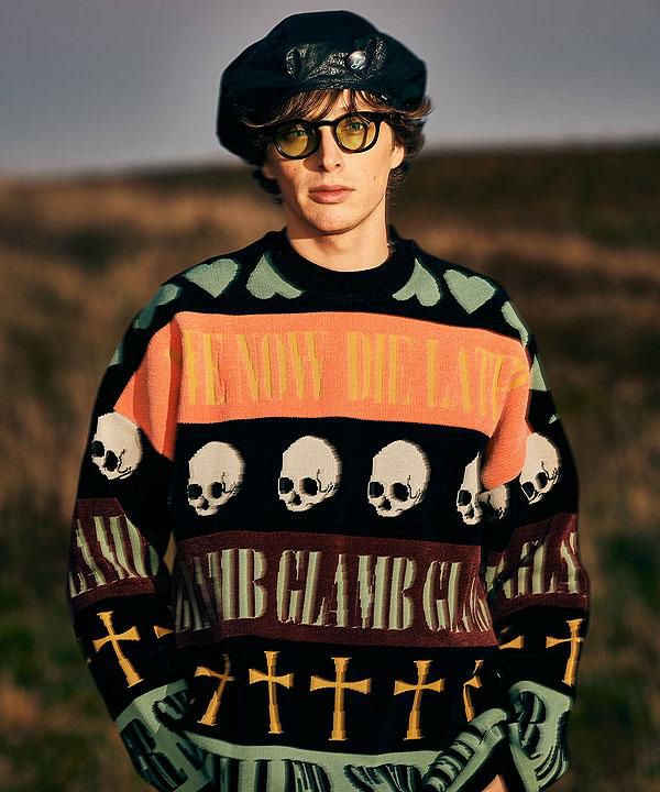 2024 秋冬 3rd 先行予約 12月上旬~中旬入荷予定 GLIMCLAP グリムクラップ Switching pattern oversized sweater