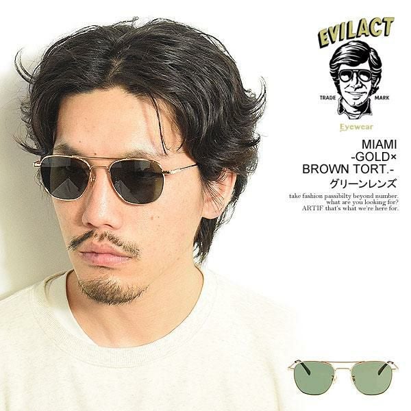 EVILACT EYEWEAR イーブルアクト アイウェア MIAMI -GOLD×BROWN TORT.- / グリーンレンズ