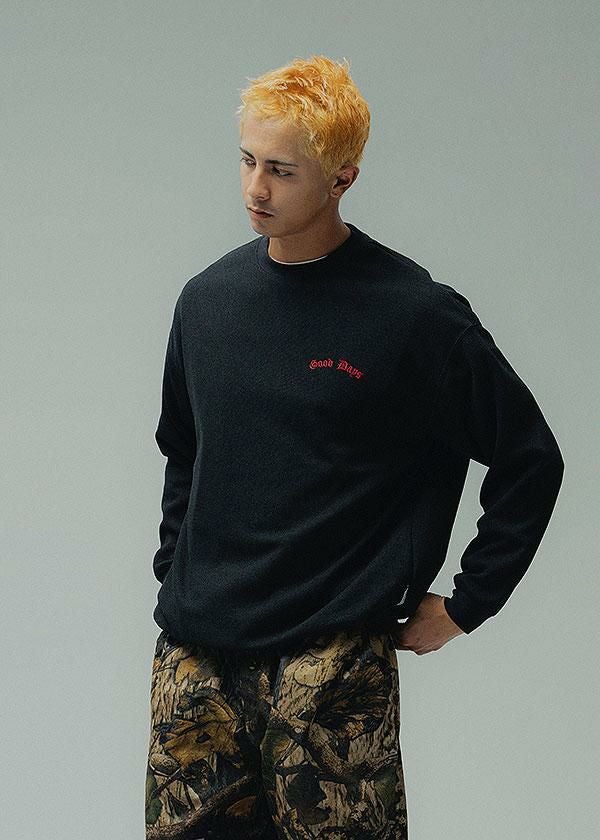 20%OFF SALE セール BEN DAVIS ベンデイビス EMBRO LOGO KNIT CREW -BLUE GRAY-