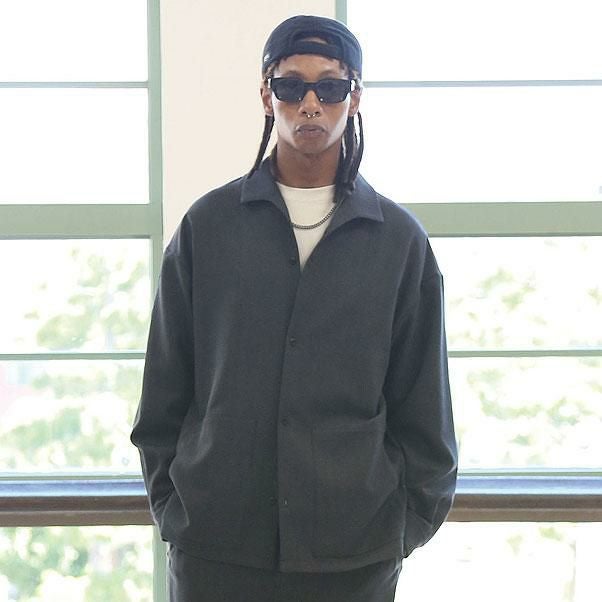 CRIMIE クライミー LEATHER COLLAR TWILL STRETCH COVER ALL JACKET