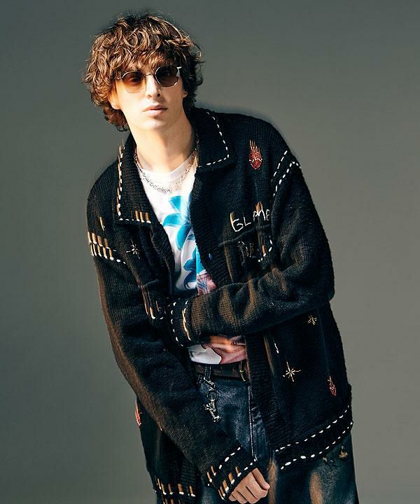 2025 秋冬 1st 先行予約 12月中旬~下旬入荷予定 GLIMCLAP グリムクラップ Minimai detail cardigan -Leopard feather yarn sweater-