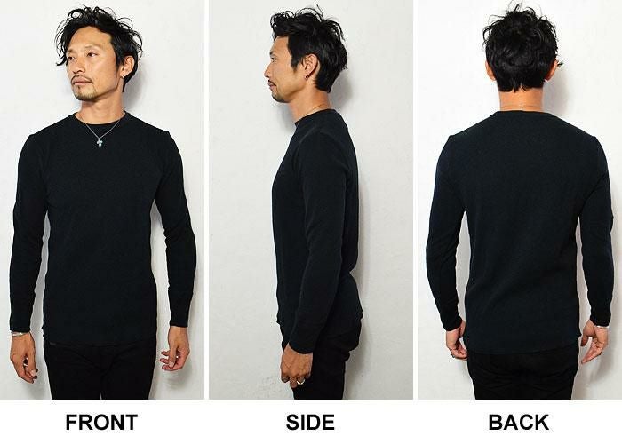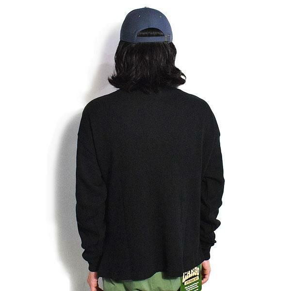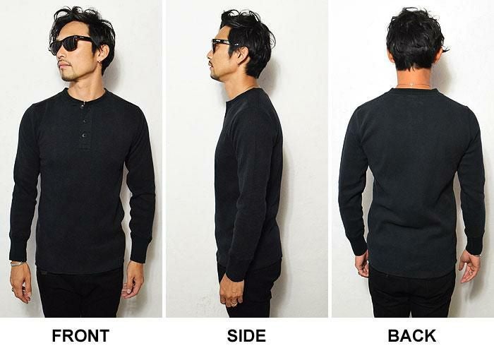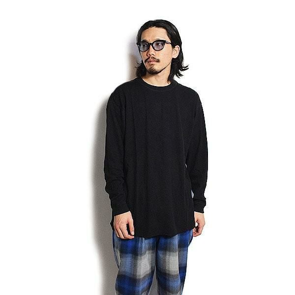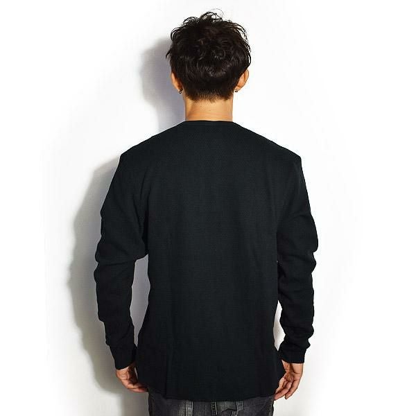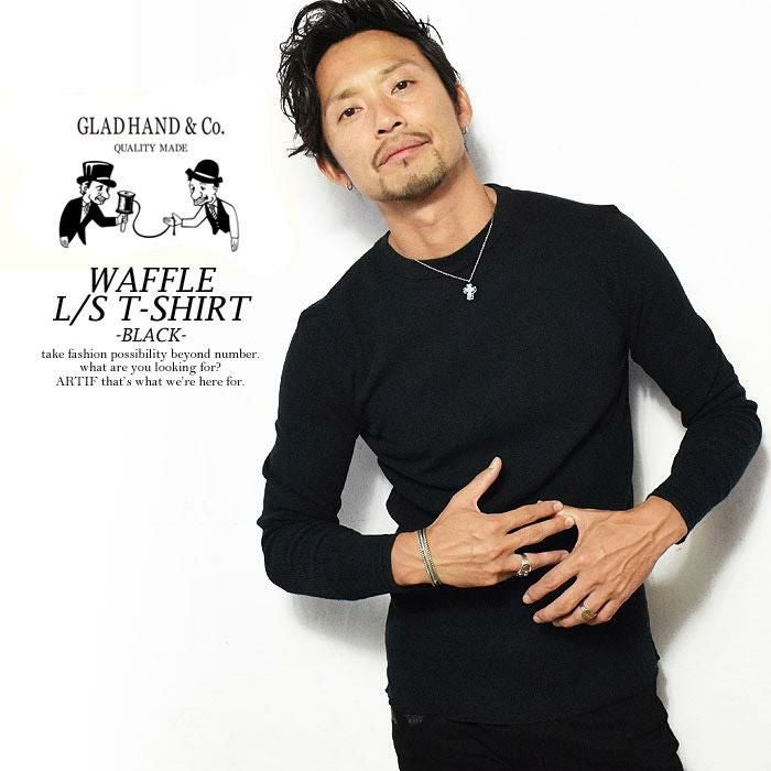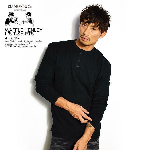 GLAD HAND グラッドハンド WAFFLE HENRY L/S T-SHIRT -BLACK-