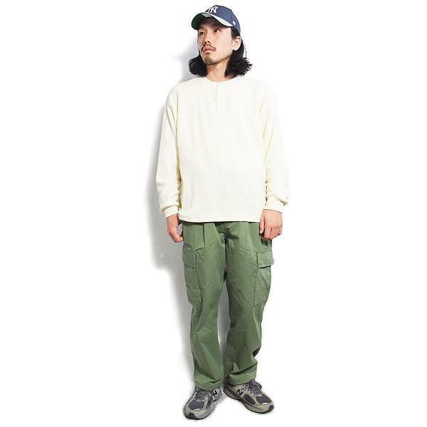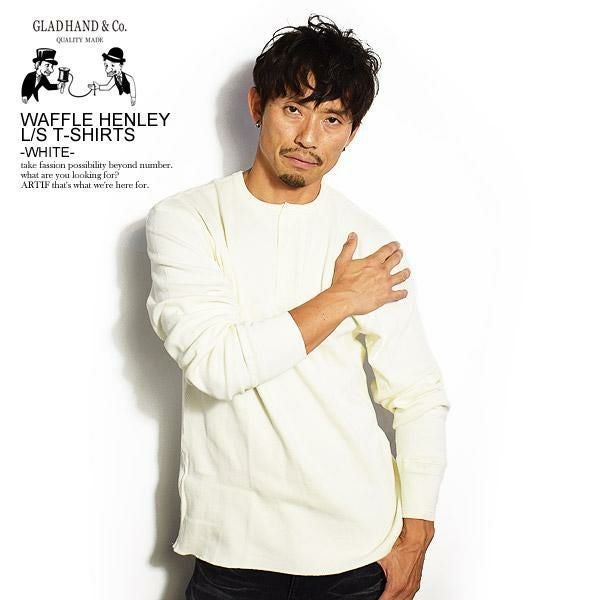 GLAD HAND グラッドハンド WAFFLE HENLEY L/S T-SHIRTS -WHITE-
