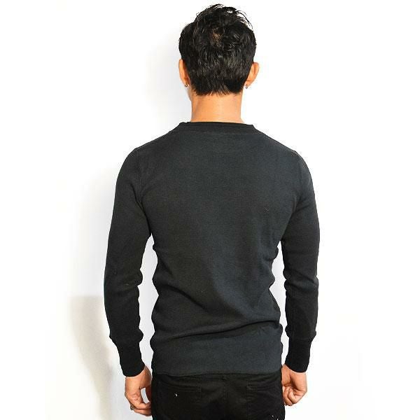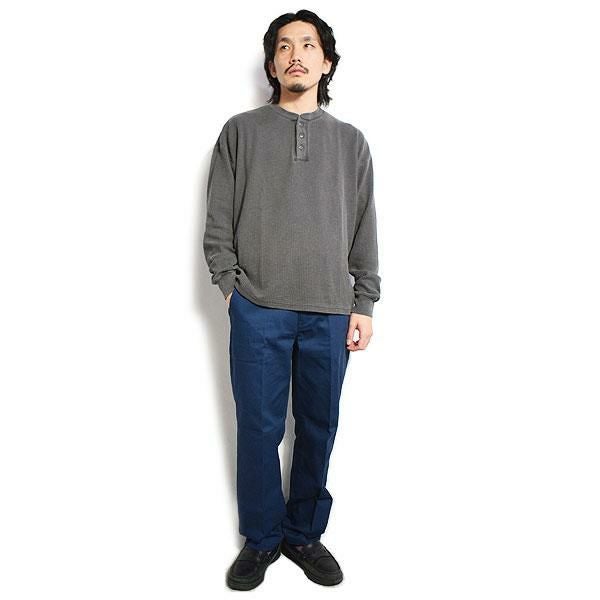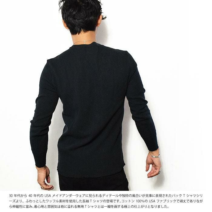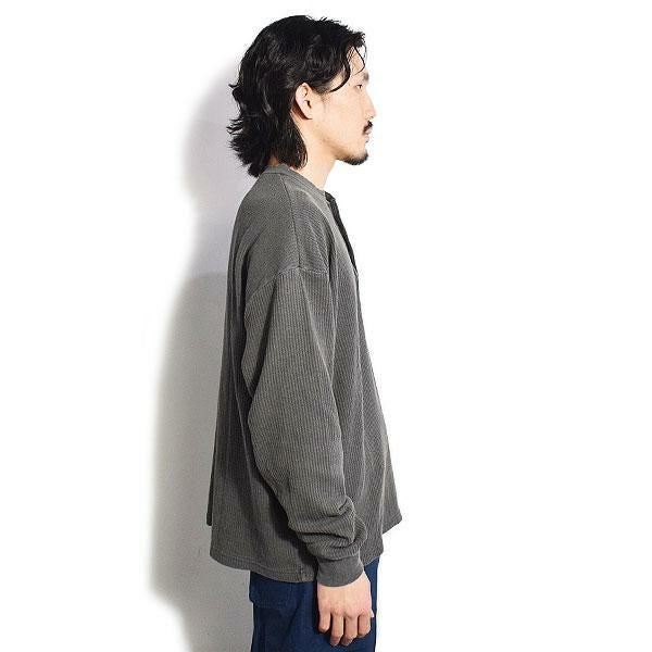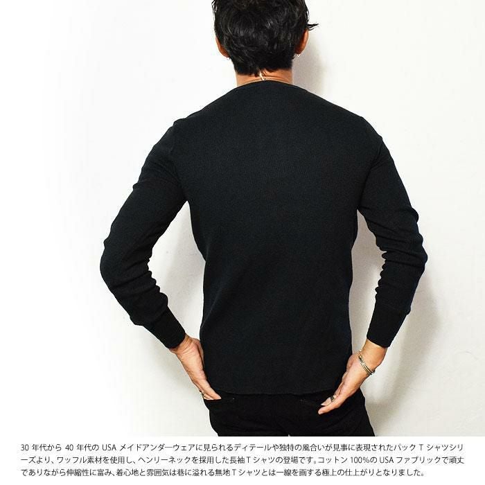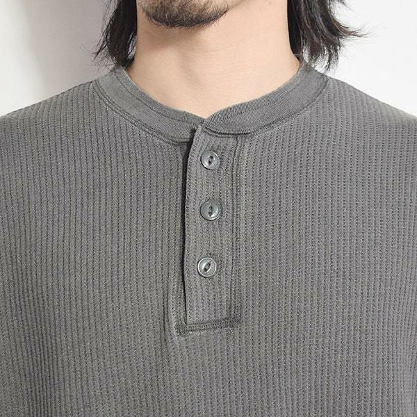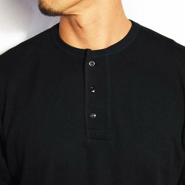 GLAD HAND グラッドハンド WAFFLE HENLEY L/S T-SHIRTS -BLACK-