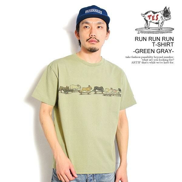 The Endless Summer エンドレスサマー TES RUN RUN RUN T-SHIRT -GREEN GRAY-