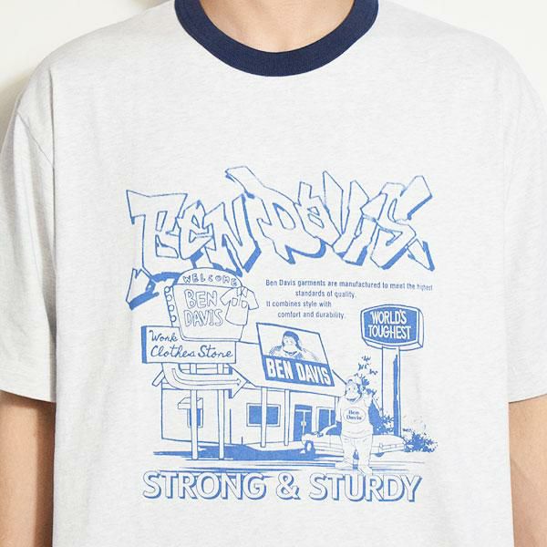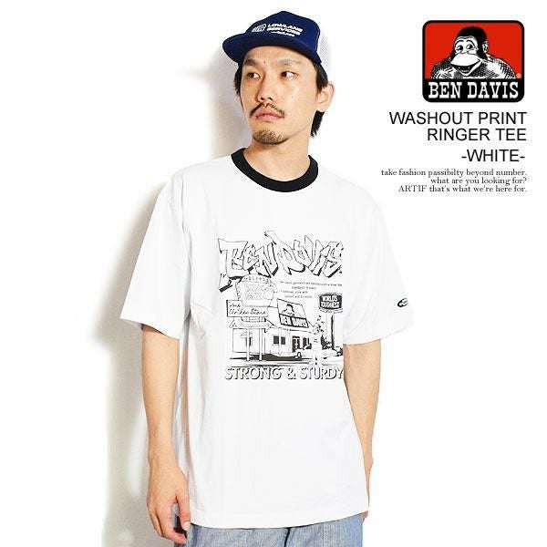 30%OFF SALE セール BEN DAVIS ベンデイビス WASHOUT PRINT RINGER TEE -WHITE-