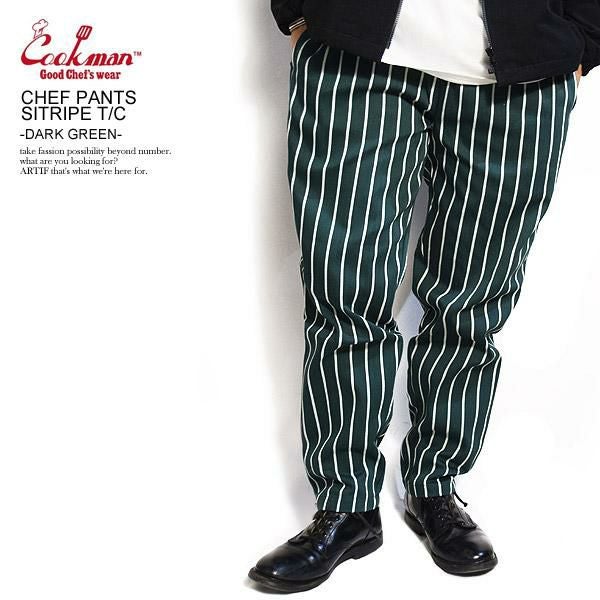 COOKMAN クックマン CHEF PANTS SITRIPE T/C -DARK GREEN- 32812
