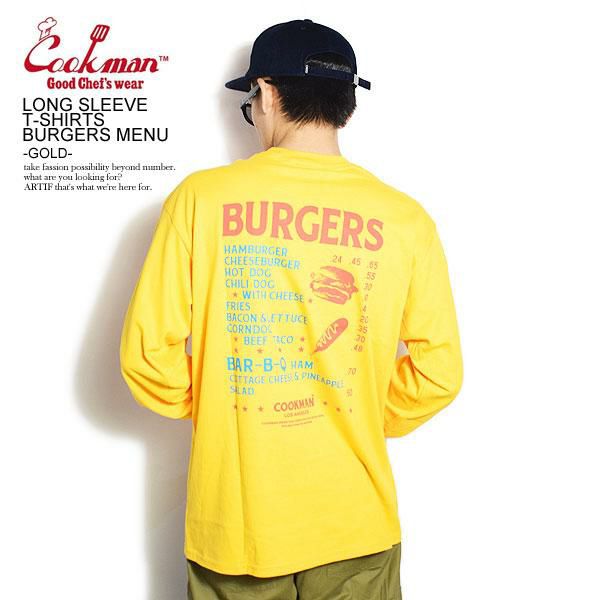 COOKMAN クックマン LONG SLEEVE T-SHIRTS BURGERS MENU -GOLD-